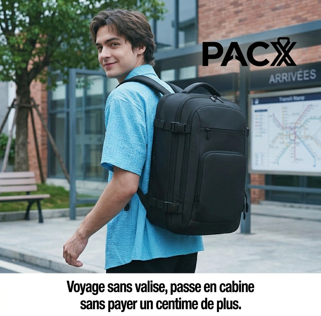 Chez PackX™, ce sac à dos à compression cabine est conçu pour les voyageurs actifs qui veulent éviter les frais de bagage, transporter plus d’affaires et rester parfaitement organisés, que ce soit pour un week-end, un voyage d’affaires ou une escapade.