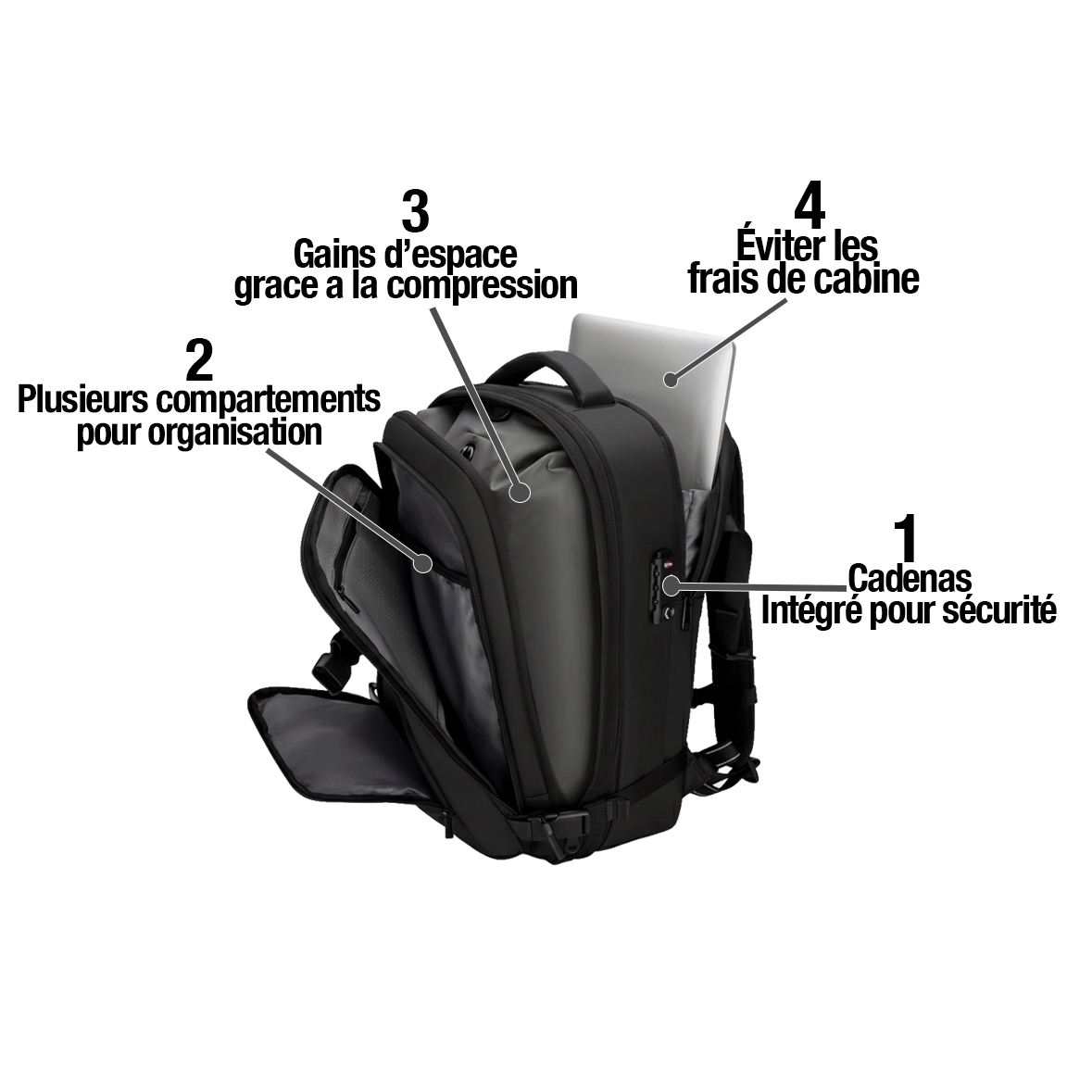 Compression sous vide intégrée pour maximiser votre espace tout en respectant les limites cabine.