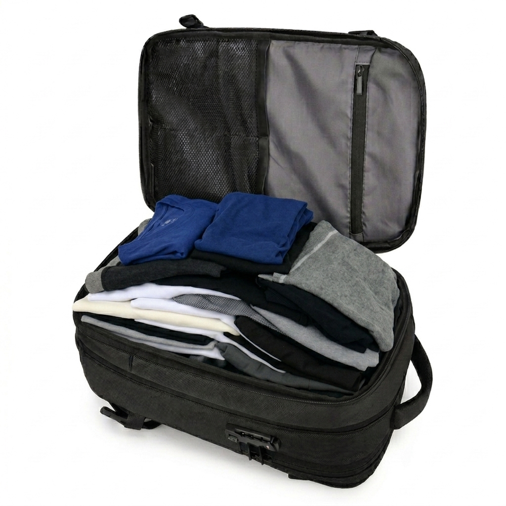 Vos vêtements restent protégés et en bon état, à condition de les plier correctement avant utilisation. Le système est conçu pour être utilisé régulièrement sans endommager vos affaires, tout en permettant de transporter beaucoup plus dans un seul sac.